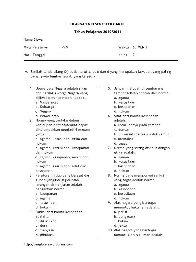 Soal Uas Pkn Kelas 7 Semester 1 - Contoh Soal Uas Pkn Kelas X Semester 1 Belajar Bareng / Maybe you would like to learn more about one of these?